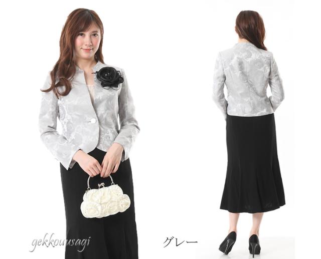 レディース ミセススーツ フォーマル スーツ 9号 11号 13号 15号 薔薇柄ジャガードジャケットロングスカートスーツ カラーフォーマル 5633