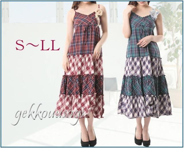 S、M、L、LLサイズのマキシ丈ワンピースです。
