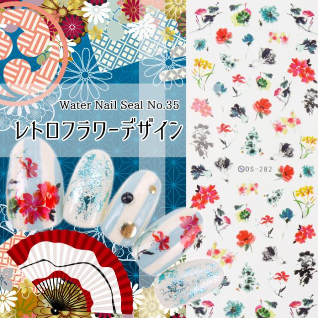メール便 ウォーターネイルシール[35]レトロフラワーデザイン | ジェルネイル セルフネイル ネイルシール ネイルステッカー ウォーターネイルシール レトロ 和柄 花びら 古典 着物 ネイル ネイル用品