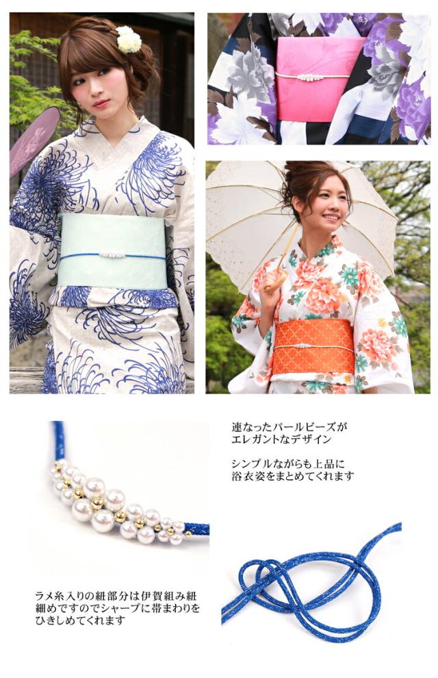 日本製伊賀組み紐 「パール使い帯飾り」浴衣 夏祭り お祭り 盆踊り 帯飾り