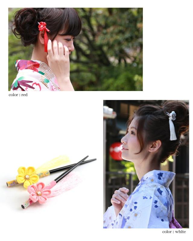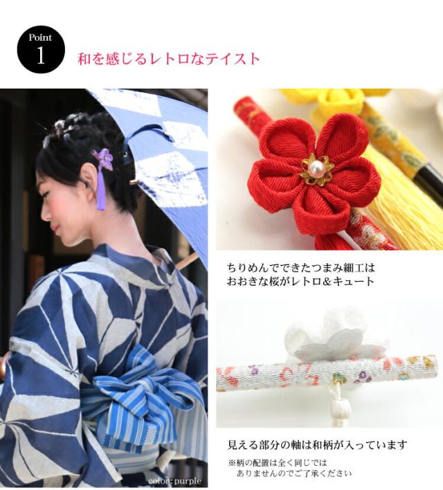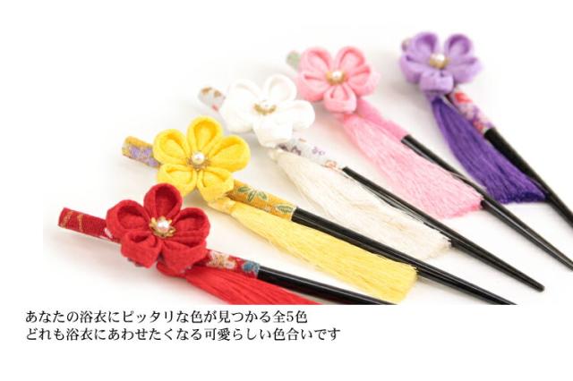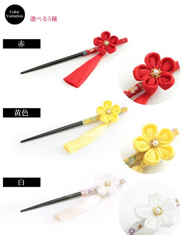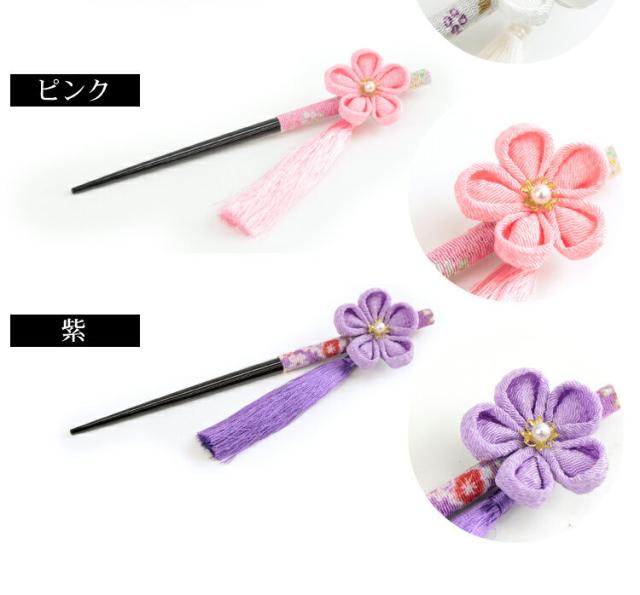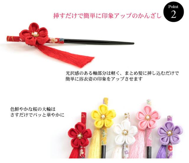 髪飾り かんざし 日本製「桜ちりめんつまみかんざし」 夏祭り 花火 盆踊り お祭り