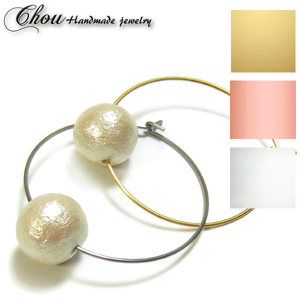 【片耳用】chou シュー ハンドメイドジュエリー ステンレスピアス 1粒コットンパール レディース /