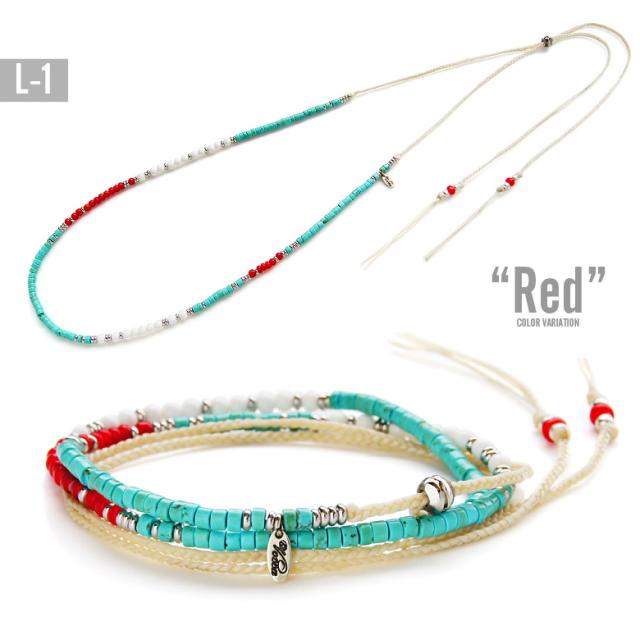 首からかけるだけでスタイルアップできるロングネックレスです。レッドやブルーと華やかなカラーから、ブラックやブラウンといったシックなカラーまで、18デザイン全43バリエーションをご用意しました。デザインもシンプルなものから、ネイティブ系やグラスホルダーとして使えるものまで幅広くラインナップ。すべて「Vocca」ブランドのロゴ入りチャーム付き。春・夏・秋までと、長く使えるロングネックレスは今後も注目のアイテムです。