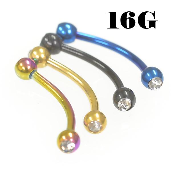 ダブルジュエル バナナバーベル【内径12mmXボール3mm】【16G】 アイブロー/へそピアス
