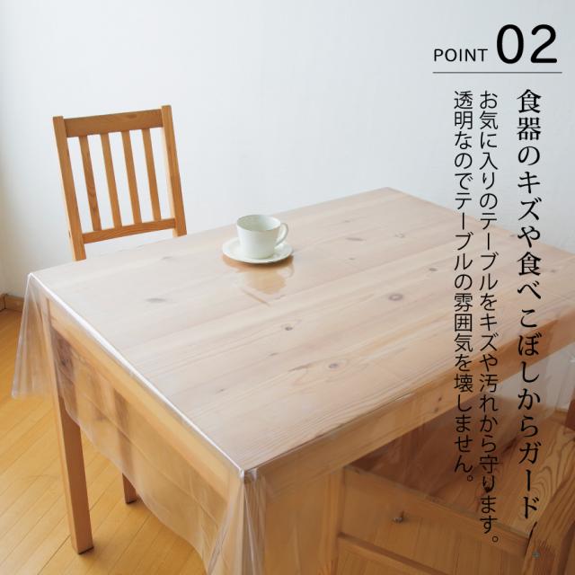 - テーブルの木目が活きる透明なテーブルクロスです。クロスの折り目は時間とともに消えていき、テーブルに違和感なくフィットしています。財布に優しいお値段ですので傷んだり汚れたりした時にも気兼ねなく買い替える...