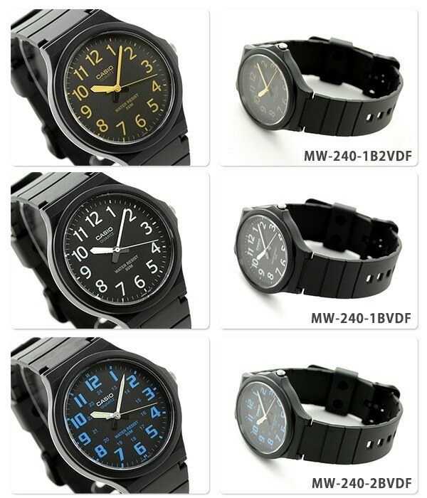 カシオ チプカシ 海外モデル スタンダード 腕時計 MW-240 CASIO STANDARD ANALOGUE 選べるモデル ラウンド型のフォルムにベーシックなデザインが特徴のモデル。シンプルな三針に、時間の読み取りがしやすいインデックスを採用。カジュアルはもちろん、少しフォーマルな服装にも合わせてお使いただける、オンオフ問わないデザインです。性別問わずお使いいただけます。 日本未発売モデル MW-240-1B2VDF MW-240-1BVDF MW-240-2BVDF MW-240-3BVDF MW-240-4BVDF MW-240-7BVDF MW-240-1E2VDF MW-240-7EVDF