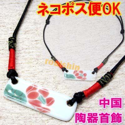 陶器ロータス画ネックレス(ネコポス便可)|アクセサリー,ジュエリー,中華街,中国,飾品