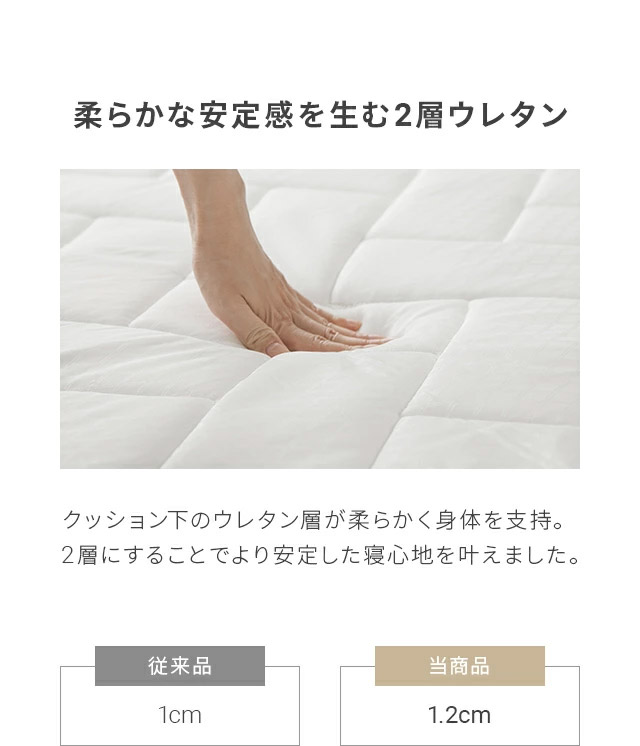 - かなりやわらかめで、寝返り打ったりするとボヨンボヨンしたかんじがします。 体重がわりとある方や腰痛がある方にはちょっとしんどいかも。