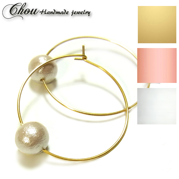 【片耳用】chou シュー ハンドメイドジュエリー ステンレスピアス 1粒コットンパール レディース/