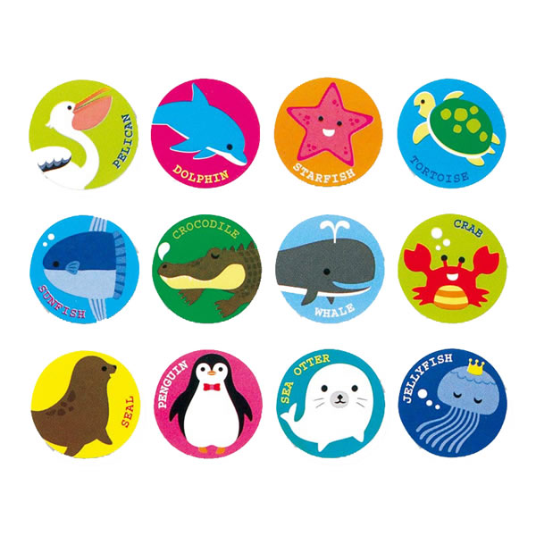 水生動物をモチーフに12種類のイラストをアソートしました。 96片入り(24片×4シート)