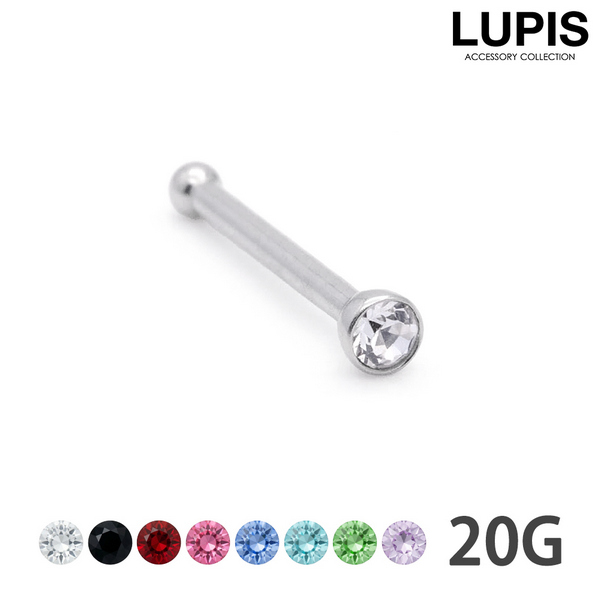 鼻ピアス 20G ノストリル ボディピアス ストーン ジュエル サージカルステンレス 金属アレルギー対応 つけっぱなしOK ストレート 簡単装着 LUPIS ルピス