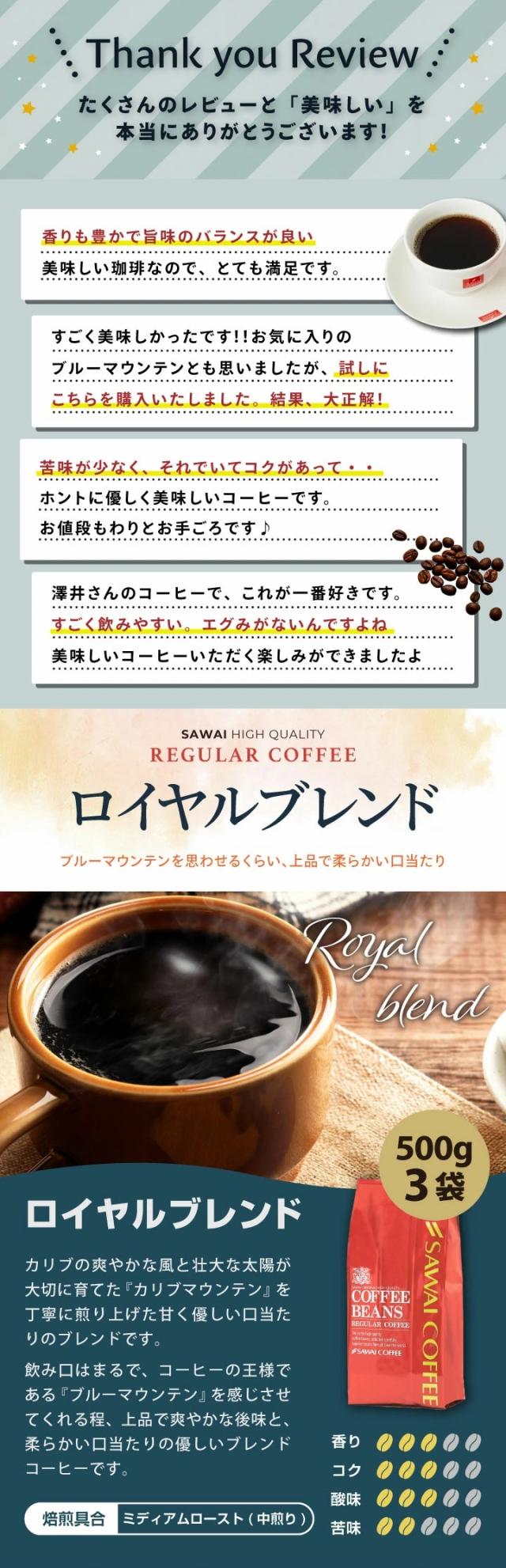 | 商品名 | 焙煎仕立ての上品な味わい!澤井珈琲のロイヤルブレンド1.5kgセット |
