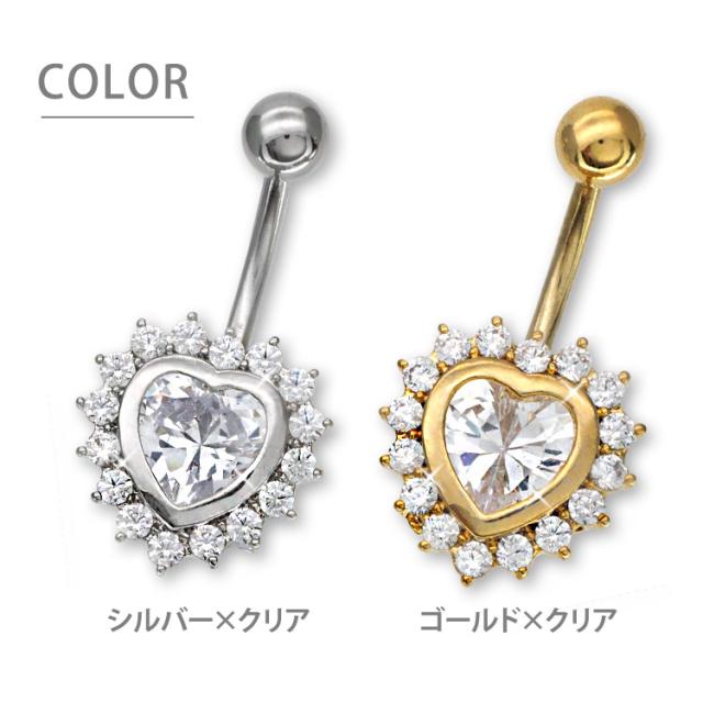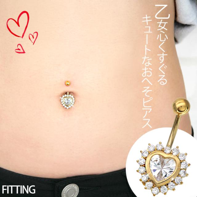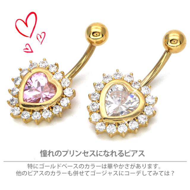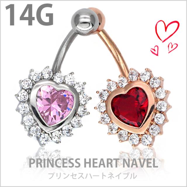 ピアス 軟骨 ボディピアス へそピアス プリンセスハートネイブル 14G ヘソピアス