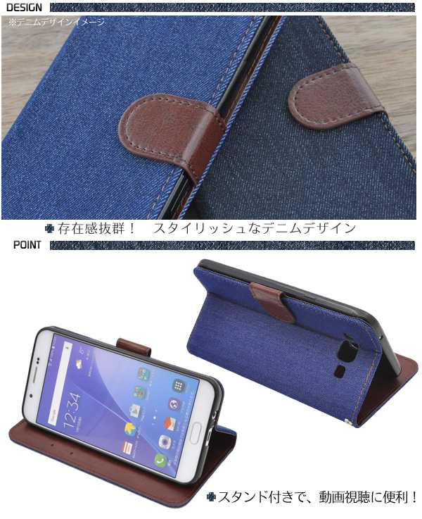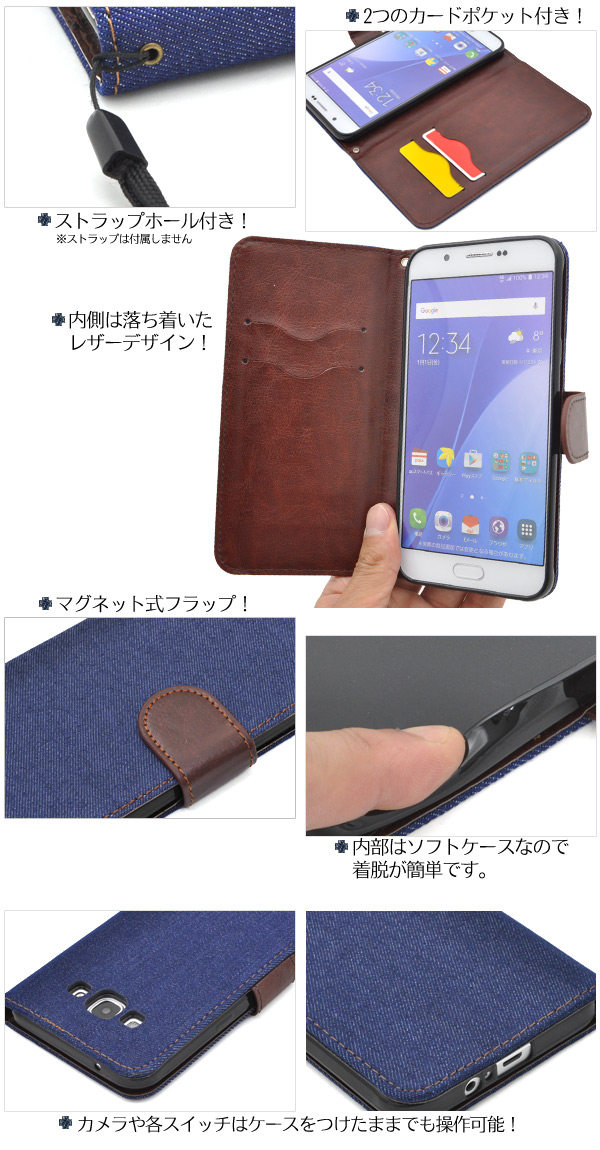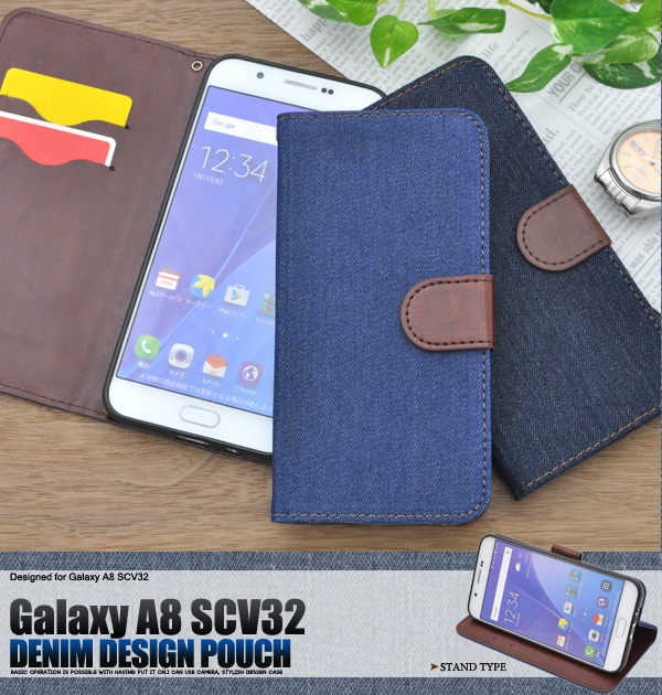 手帳型 Galaxy A8 SCV32 デニムデザインケース シンプル かわいい au ギャラクシー エーエイト SCV32用 保護カバー