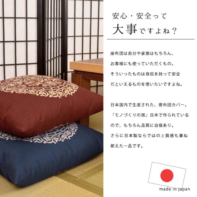 日本製 綿100% 座布団カバー 丸紋 ( まるもん ) 59×63cm 八端判 (国産 和室 和風 和柄 インテリア 座蒲団 ザブトン ざぶとん 55)