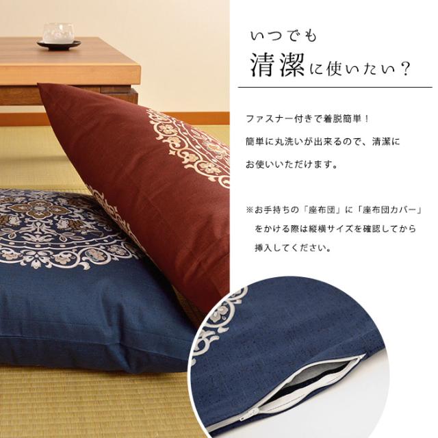 | ※画像はイメージです。座布団カバー以外のものは付属しません。 ※できるだけ実物と同じ色合いになるようにしていますが、パソコンモニタの環境などによって実物と色合いが異なる場合がございます。 |