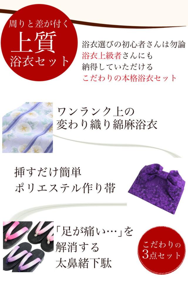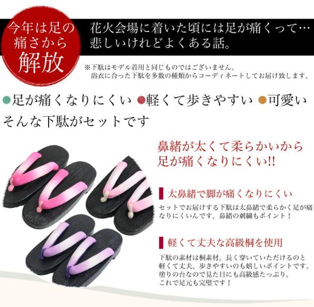 浴衣・帯・下駄以外の小物類はセットに含まれません。