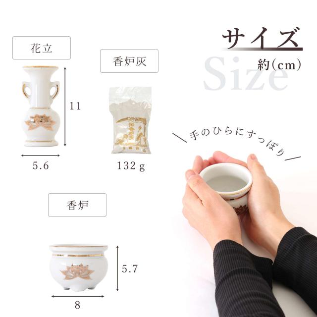 必要な仏具がすべて揃い、香炉灰・おりん4点セットも付属。