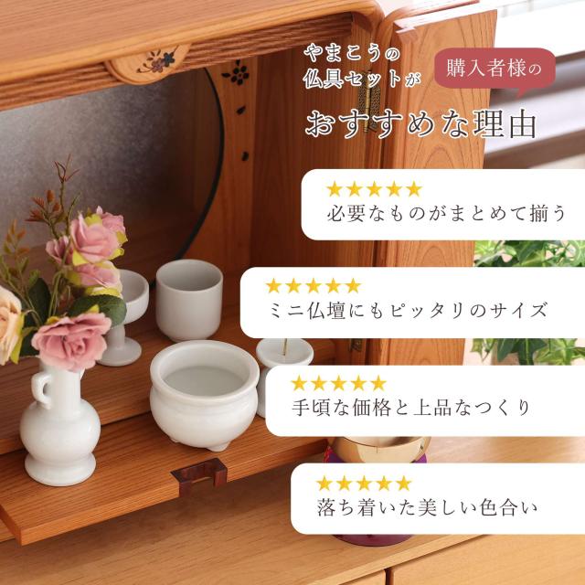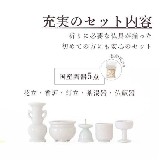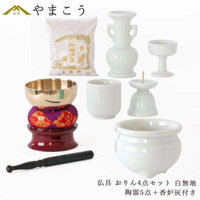 仏具 セット ミニ おりん 4点+陶器5点(白 ホワイト 無地)+香炉灰 仏具セット おしゃれ モダン 国産 日本製 仏壇セット モダン仏具 モダン仏壇 お盆 お彼岸 お墓参り お供え 供養 法事