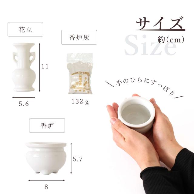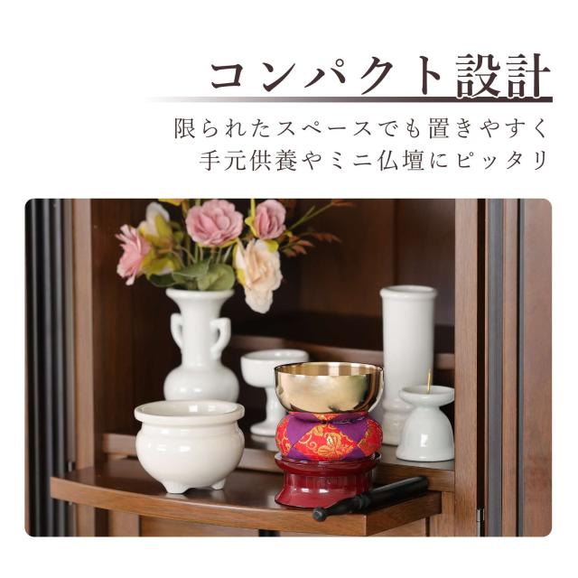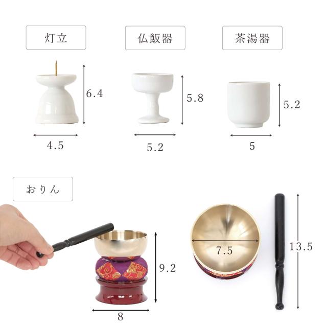必要な仏具がすべて揃い、香炉灰・おりん4点セットも付属。