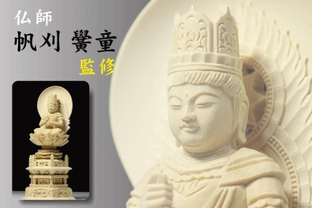| 大日如来像 火焔光背 六角台座 白木製 真言宗 御本尊 2.5寸 大仏師 帆刈黌童(ほかり こうどう)監修のご本尊シリーズ。一木造り、やわらかな木肌の白木製お仏像。モダン仏壇やミニ仏壇にもご安置しやすい大きさ、各宗派をご用意しております。 木彫像に寄せる大仏師の想いと共に、職人による丁寧な仕上げが一体ずつ施されています。優しいお顔の仏様、安らぎと平穏を享受し故人への感謝をお祈りいたします。 仏身の台座は六角台座、繊細な装飾彫りは存在感のある外観。お仏壇に収まリやすい形状にもなっています。ご本尊を荘厳に引き立てる、豪華な仕様となっています。 天然木素材で作成されているため、木目や色合いに個体差がございます。年月の経過とともに飴色になり、仏像独特の風合いが出てまいります。 お届け当初の木目や色合いは目立たなくなりますのでご承知ください。 お仏像は仏壇中央にある須弥壇の上に安置いたします。ご購入の際は事前に奥行、天井までの高さをご確認ください。 帆刈 黌童 <大仏師・名古屋市> ■主な作品 平成 9年 鎌倉長谷寺より仁王像修復 大善寺(東京) 平成10年 日蓮聖人像 瑞光寺(東京) 平成11年 弥勒菩薩像 開法寺(北海道) 平成11年 烏枢沙摩明王像 開法寺(北海道) 平成12年 弘法大師像 成田山深川不動堂(東京) 平成12年 聖徳太子考養像 成田山深川不動堂(東京) 平成14年 大日如来像 成田山深川不動堂(東京) 平成17年 仁王門仁王像 弘誓寺(宮城) 平成17年 如意輪観音像修復 安養寺(宮城) 平成23年 不動明王 座像一丈八尺 成田山深川不動堂(東京) 平成24年 池上本門寺御本尊 日蓮大聖人模刻 法妙寺(長崎) | |||