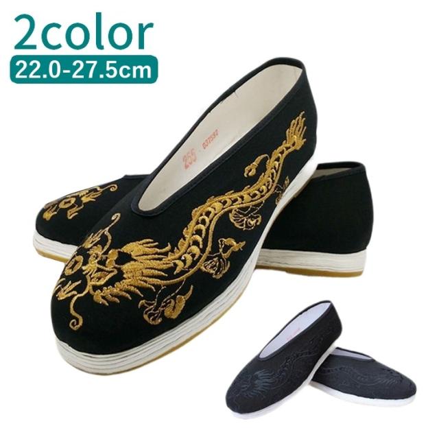 ドラゴンの刺繍入りのカンフーシューズ風カジュアルシューズです