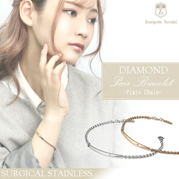 ザニポロタルツィーニ ブレスレット ダイヤモンド プレート ステンレス ペアブレスレット ペア ブレス カップル お揃い アクセサリー ペアブレス
