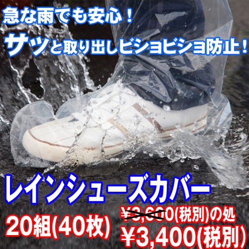 梅雨対策 レインシューズカバー20組(40枚入)(雨の日,雨,水ハネ,水溜り,泥かぶり,靴カバー,ブーツカバー,コンパクト,持ち運べる)