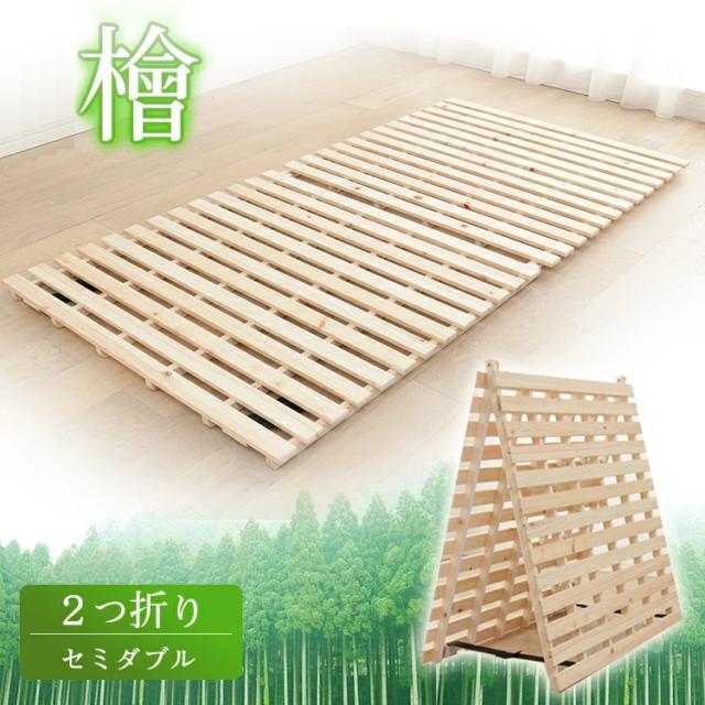 ベッド セミダブル すのこベッド 2つ折りすのこベッド セミダブル 檜 すのこ 折りたたみ ベッド ベット 通気性 スノコ 送料無料 【int】