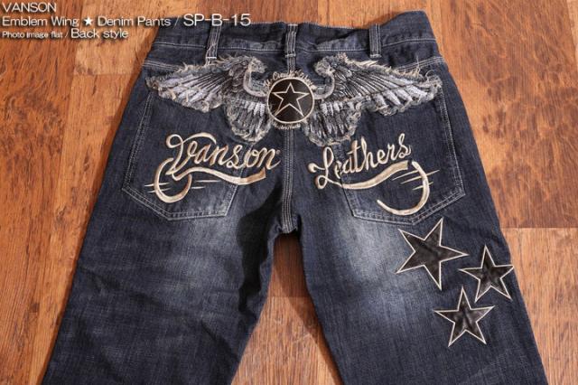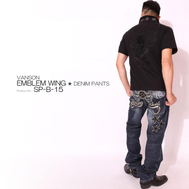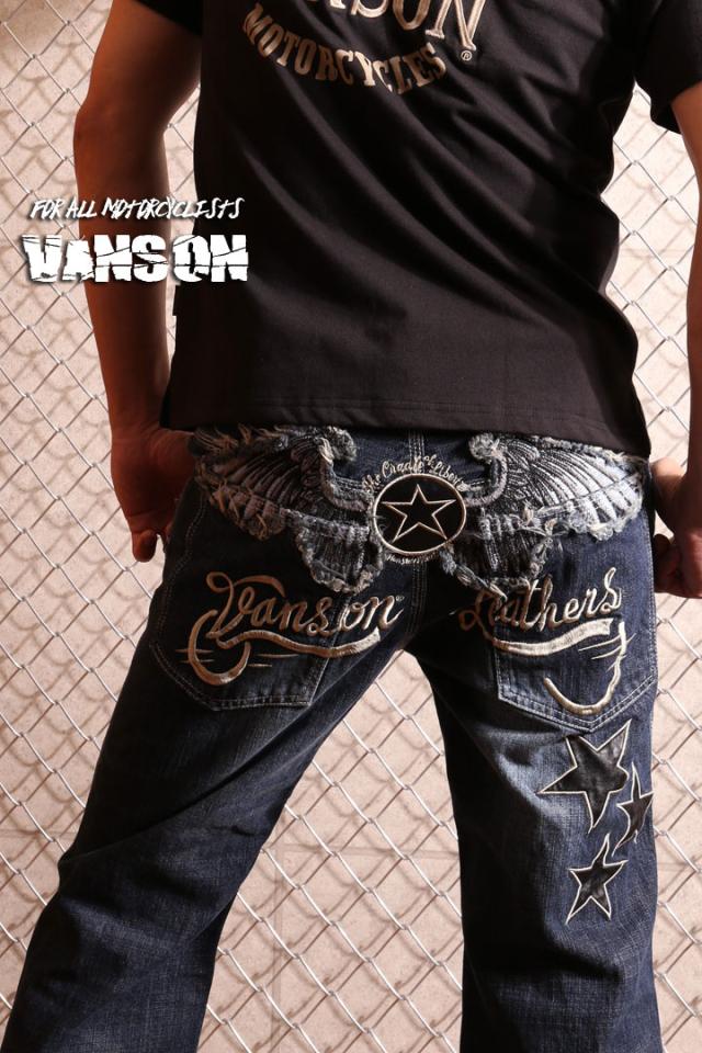 VANSON バンソン エンブレム ウィング 刺繍 USED加工 デニム(SP-B-15)ジーンズ ボトムス アメカ