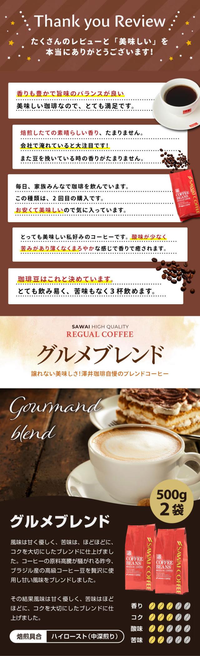 - いつもグルメブレンドです。 ?日コーヒータイムを楽しみにしています。とても美味しいコーヒーです。ありがとうございます。