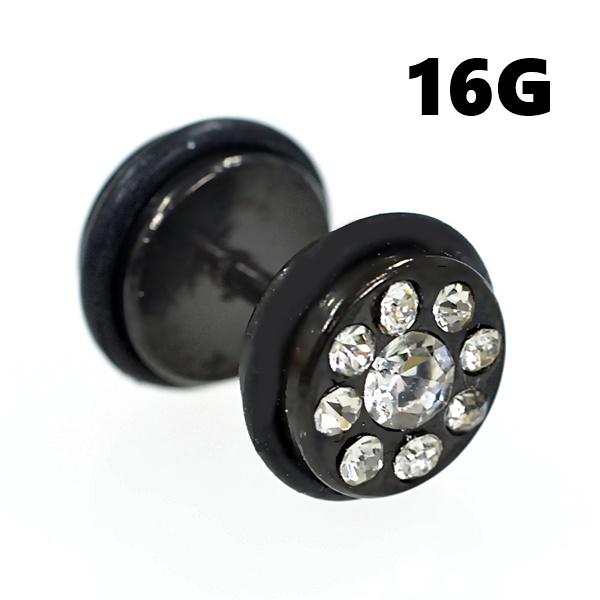 ブラック カービング ジュエル フェイクプラグ/フェイクバーベル ストレートバーベル 【16G/1.2mm】