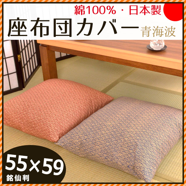 日本製 綿100% 座布団カバー 青海波 ( せいがいは ) 55×59cm 銘仙判 (国産 和室 和風 和柄 インテリア 座蒲団 ザブトン ざぶとん 55)