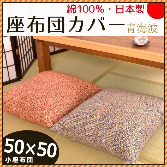 日本製 綿100% 座布団カバー 青海波 ( せいがいは ) 50×50cm 小座布団 (国産 和室 和風 和柄 インテリア 座蒲団 ザブトン ざぶとん 50)