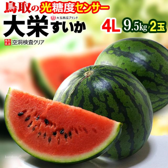 鳥取 大栄すいか 秀品 (4L×2玉) 鳥取産 スイカ 大栄スイカ すいか だいえい ダイエイ 特大 大玉 ジャンボ suica 西瓜 光糖度センサー 空洞検査 watermelon 食品 フルーツ 果物 スイカ 贈答 ギフト 甘い 人気 男性 女性 喜ばれる 2026 御中元 お中元 お供え 御供え 送料無料