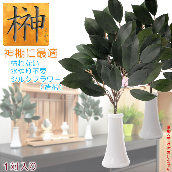 【神棚・祭壇に便利:榊・シルクフラワー(造花)1対入り】神道 祭事 神様 神札 お札 札入れ