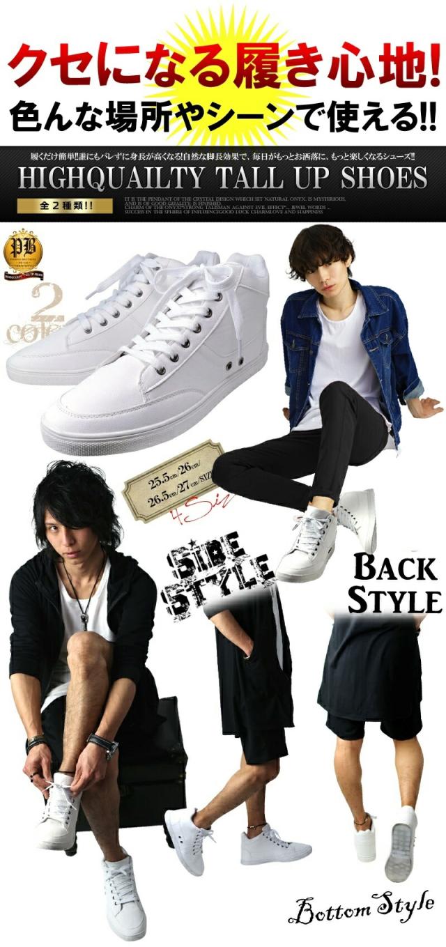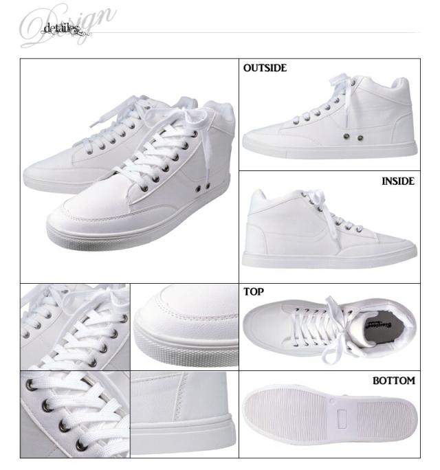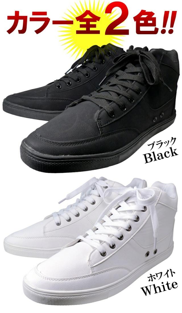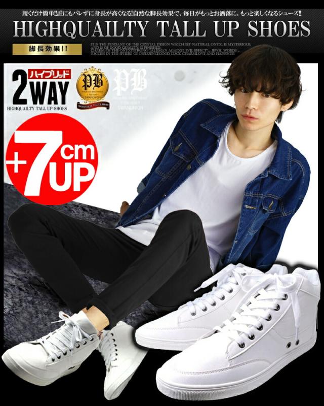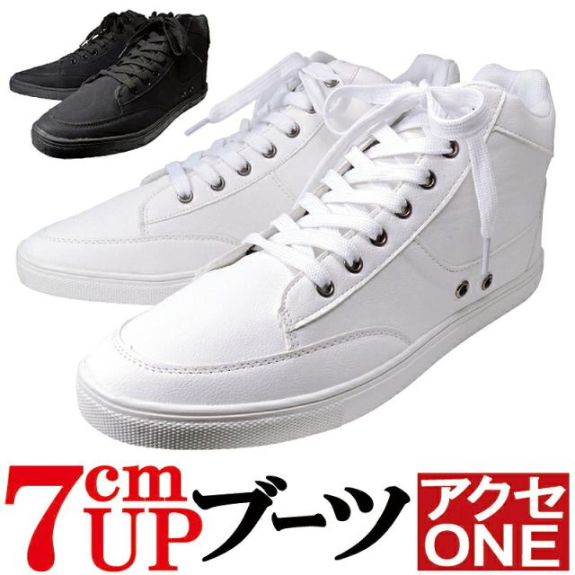 送料無料 7cmアップ スニーカー ホワイト 白 ブラック 黒 ハイカット シューズ 靴 身長UP おしゃれ 【 j-kutu22-t 】