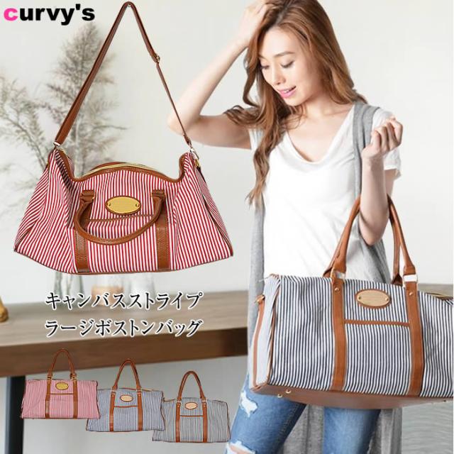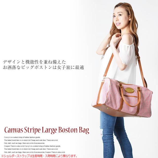 ボストンバッグ 宅配便配送 ボストンバッグ レディース ボストン バッグ 鞄 キャンバス ストライプ 大型 修学旅行 旅行 可愛い 2泊 バック bag キャンバスストライプラージボストンバッグ