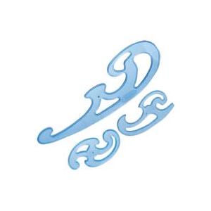 透明ブルーで見やすい「マルス雲形定規」セット。使いやすいインクエッジ付です。 ●色:透明ブルー ●3枚組 ●インクエッジ付き ●本体材質:PS製 ●包装形態:シース入