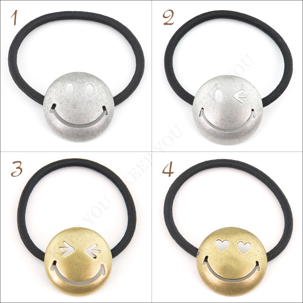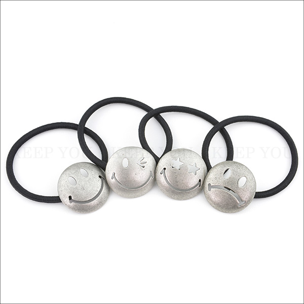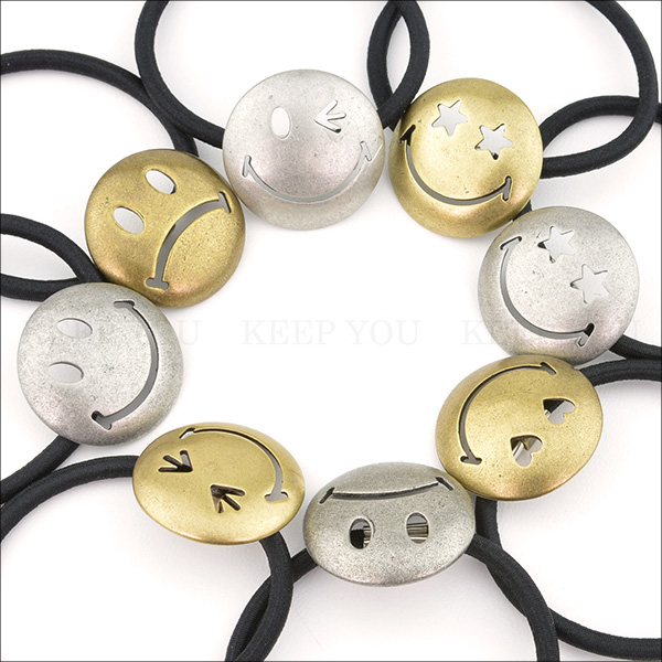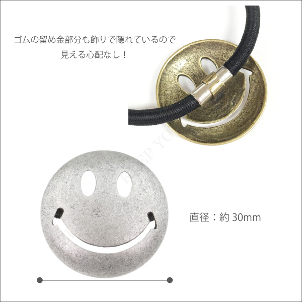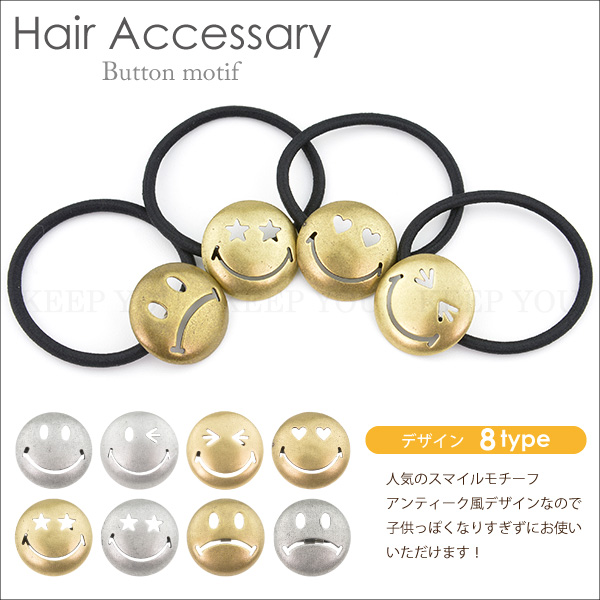 【メール便対応】ヘアゴム スマイル ボタンモチーフ ニコちゃん ゴールド シルバー メタルモチーフ コンチョ ヘアアクセ acc-122 ┃