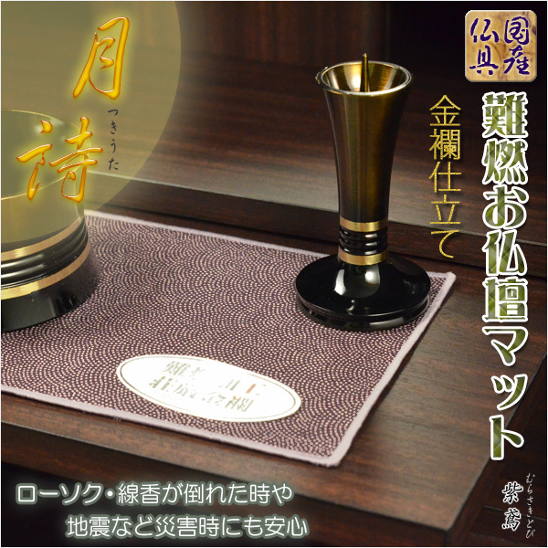 国産仏具【金襴仕立 難燃お仏壇マット:月詩(つきうた)紫鳶(むらさきとび)】モダン仏具 防火マット ネコポス送料無料
