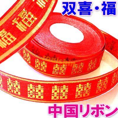 婚礼用品 お祝いに 金縁・双喜、福ラッピングリボン赤地2.5cm |チャイナ,グッズ,ダブルハピネス,中国,中華街,レトロ,雑貨,,昭和,アイテム,お土産,ギフト,誕生日,プレゼント,グッズ,