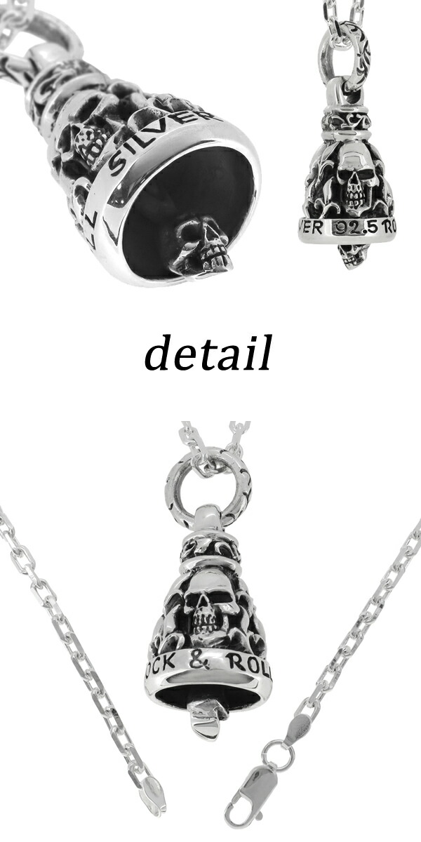 ROCK&ROLL スカル アラベスク 唐草 ベル シルバー ネックレス(チェーン付きペンダントトップ)ネックレス メンズ シルバー 925