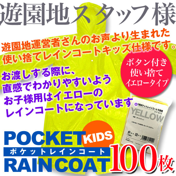 イエローレインコートキッズ/子供用(100枚セット)雨具/カッパ(アウトドア・旅行景品・販促商品)使い捨てレインコート 送料無料