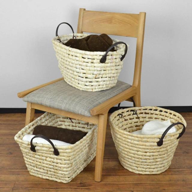 メイズ(トウモロコシの皮)を編んで作られたバスケットです。メイズの素材は軽くてしなやかです。シンプルでやさしい印象のデザインは、幅広いテイストのインテリアに馴染みます。