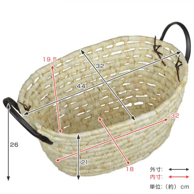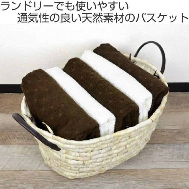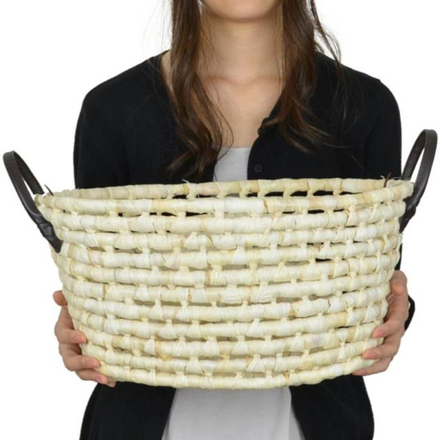 かご ソフトバスケット メイズ 楕円型 持ち手付き ( 幅44×奥行32×高さ21cm 収納 カゴ バスケット 天然素材 小物収納 小物入れ 収納かご 洗濯かご 洗濯物入れ 通気性 籠 収納バスケット リビング 玄関 脱衣所 )