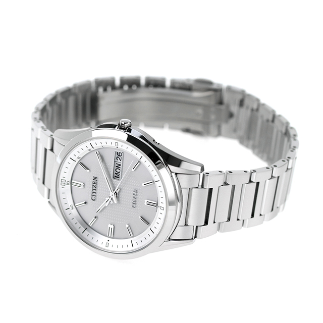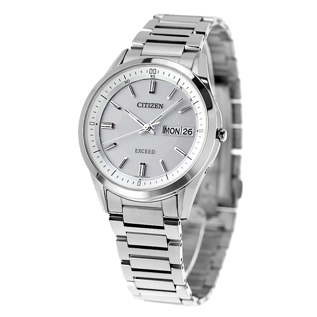 正規品 7年保証キャンペーン 送料無料 シチズン エクシード デイデイト エコ・ドライブ 電波 メンズ 腕時計 AT6030-60A CITIZEN EXCEED アナログ シルバー 確かな品質と洗練されたデザインによって唯一の価値を生み出す。シチズン エクシードは、まさに「本物」を求める大人にふさわしい時計。エクシードとの出会いは、きっと人生を彩る新たな輝きになる。 ディスク式デイデイト付きの薄型ドレスウォッチ。独自の表面硬化技術「デュラテクト」を施したスーパーチタニウムを採用。エクシードのコアバリューである“薄型”にこだわったエレガントなデザイン。シンプルなデザインなので、カジュアルからフォーマルまで幅広いファッションに合わせてお使い頂けます。 発売日:16年6月発売 旧品番:AT6030-51A