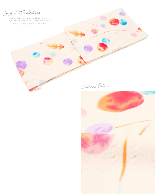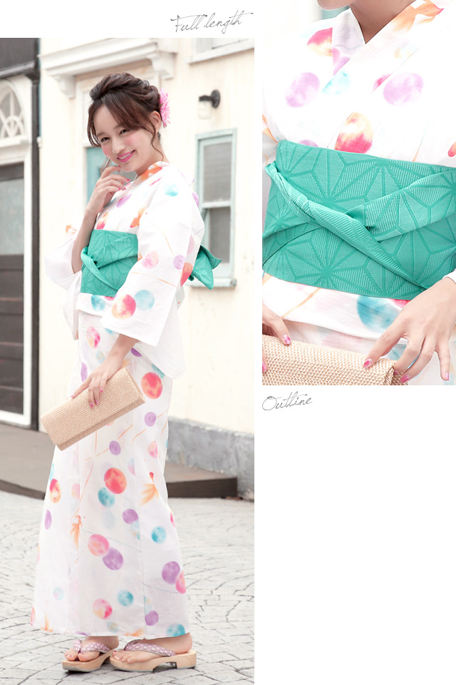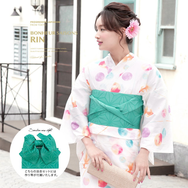 浴衣セット レディース レトロ 作り帯 浴衣セット 大人 3点セット クリーム系 オレンジ 緑系 水玉 ドット 金魚 綿 女性 ボヌールセゾン S フリー