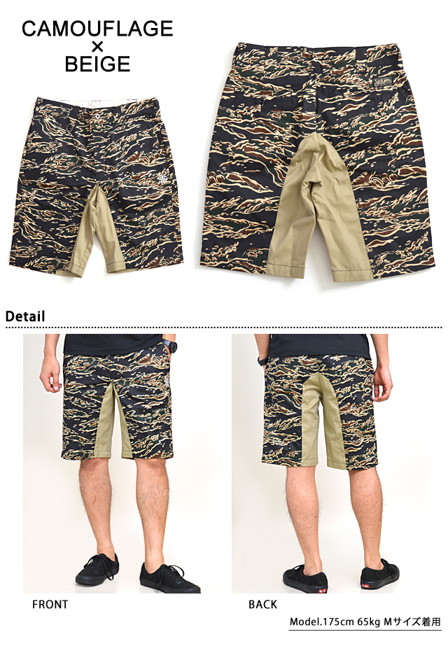 柄切替モンキーショートパンツ スカルワークス SKULL WORKS 迷彩 カモフラ ショーツ 短パン ハーフパンツ
