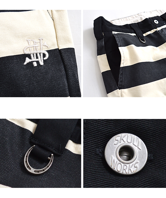 既成概念に決して媚びない、新しいスカルの形を追求し続けるスカルワークスから、「柄切替モンキーショートパンツ(141608)」のご紹介です。